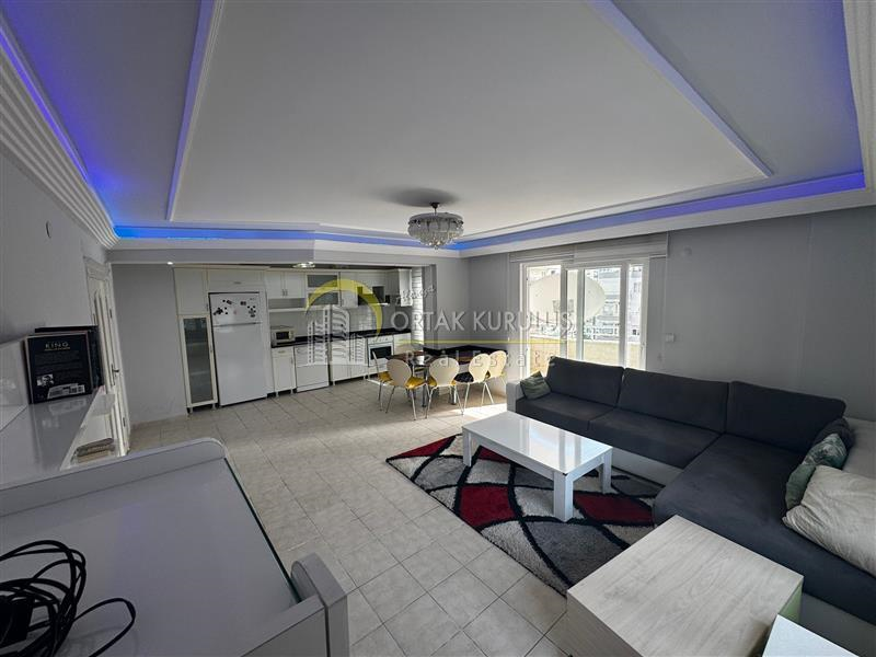 Mahmutlar'ın en merkezi noktalarından Salı Pazarı mevkisinde, geniş balkonu ve ferah yapısıyla oturuma hazır eşyalı daire.